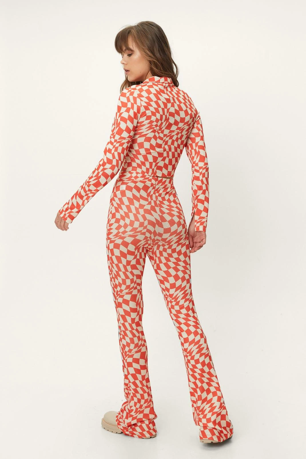 Leg day. Feel fierce in our flare pants, with a colorful abstract pattern, a comfortable high waistline, and ultra flattering flared fit. Style with the matching crop top for a look perfect for anything, from gig nights to airport layovers to nearby dancefloors.