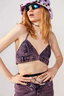Festival ready. Style with matching shorts, chunky boots, fluffy bucket hat, and fishnet tights.