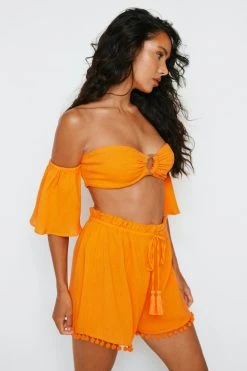 On the beach. Layer over your favorite bikini, and team with matching cover up shorts