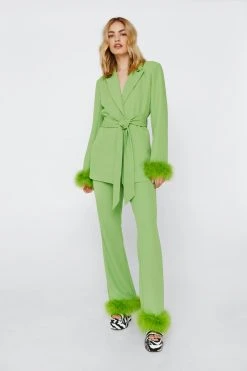 Ruffle some feathers. Wear with matching pants and pointed heels.