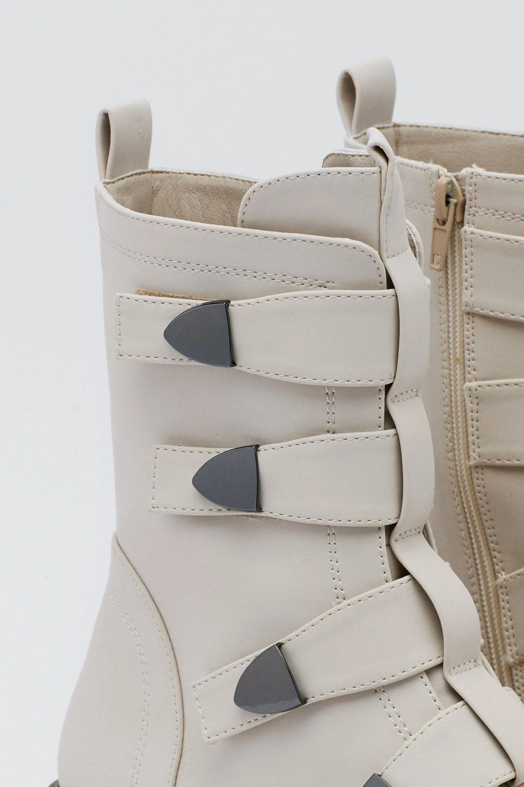 Step it up. Feel ready to seize the day in our biker boots, with statement strap features, comfortable chunky soles, and buckle fastenings. Pairs well with all of your fave looks, to take you from the office to festival weekends to nights out.