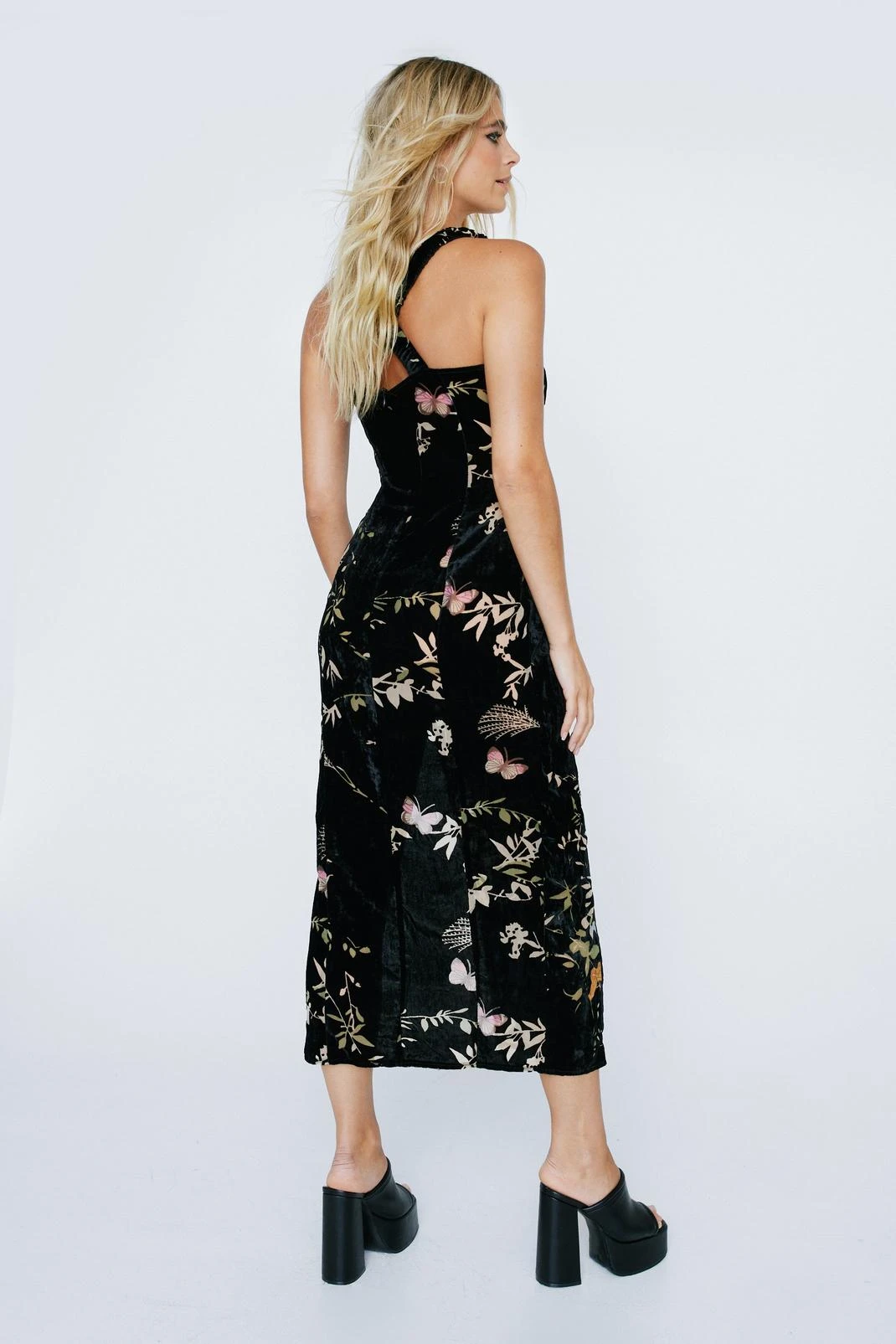 Butterfly Devore Ruched Strap Midi Dress
