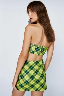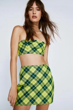 Plaid please. Embody ‘as if’ energy in our plaid mini skirt. Style with the coordinating blazer and bandeau for a matching moment that will turn heads.