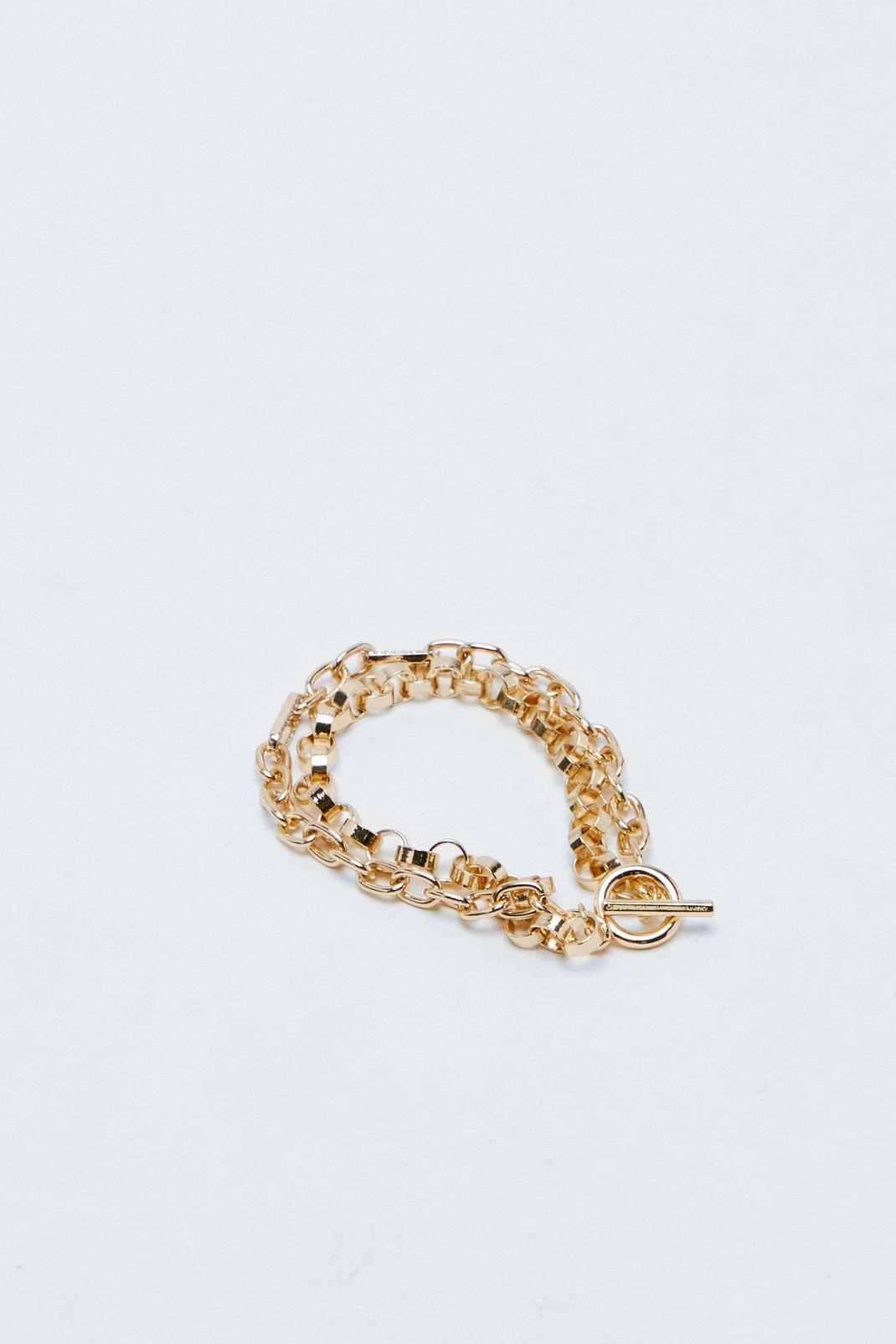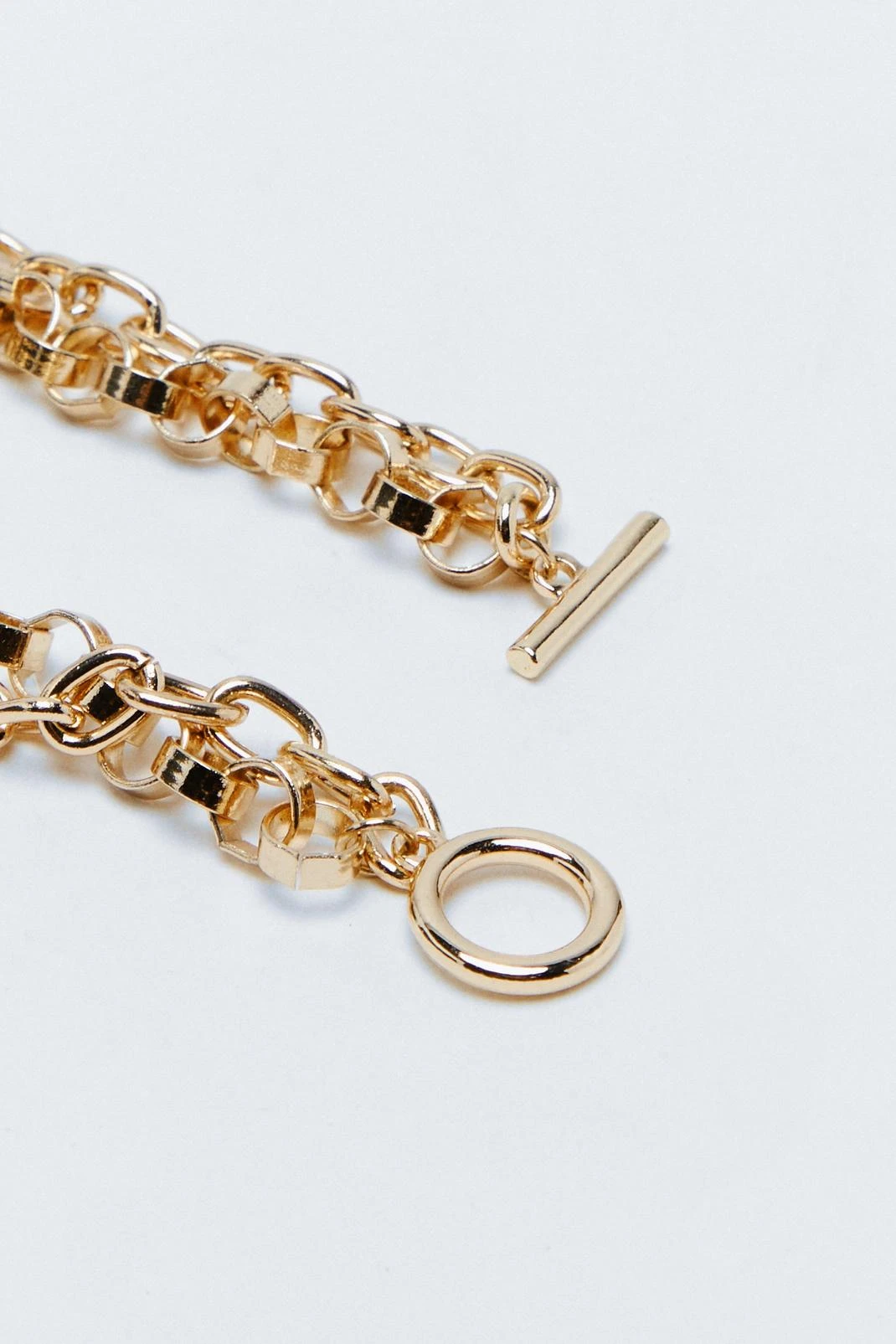 Chain reaction. Our chunky chain bracelet features two chains and a toggle fastening for accessorizing any look.