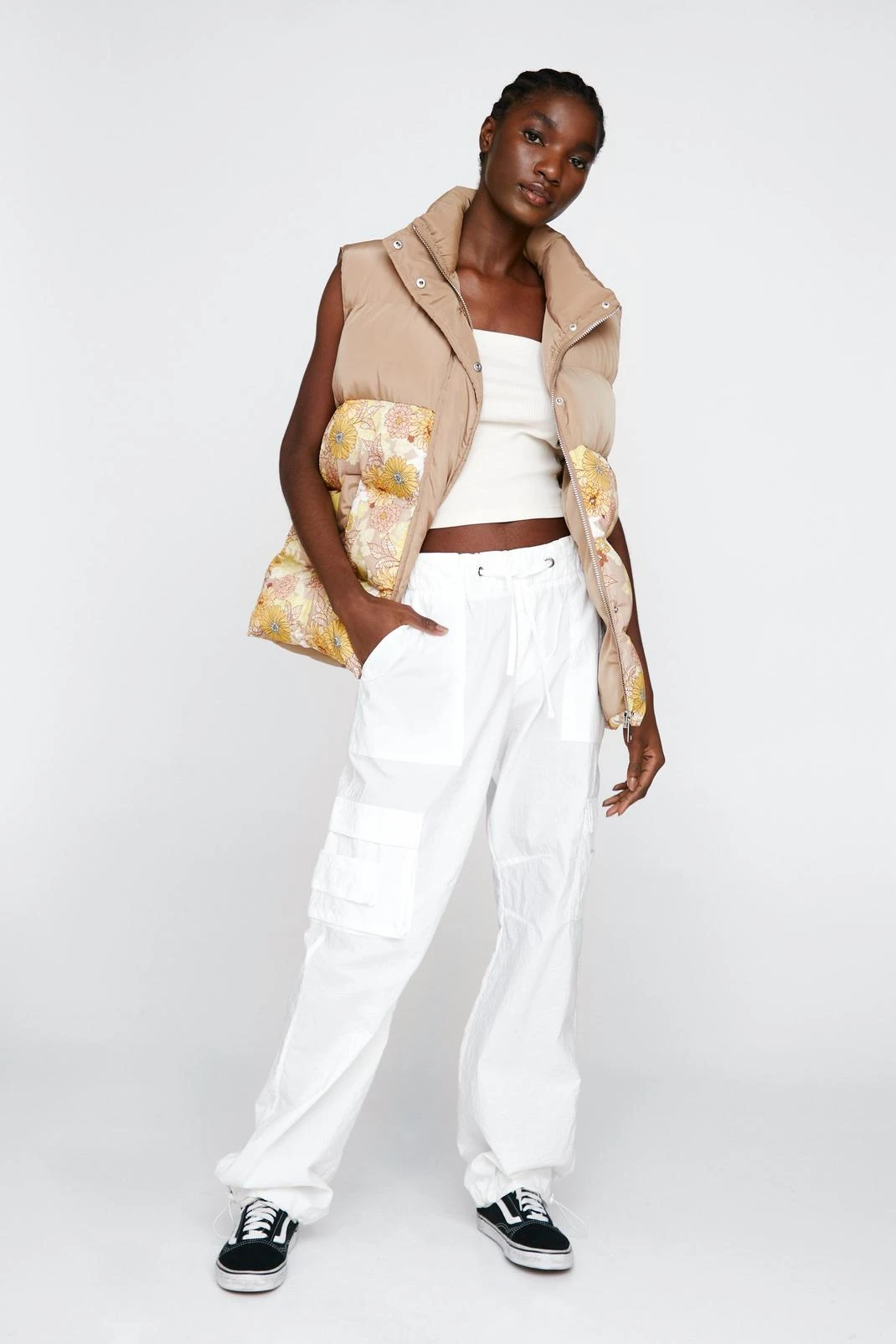 All about layering. Pair with a crop top, cargo pants, and sneakers for an elevated off-duty look.
