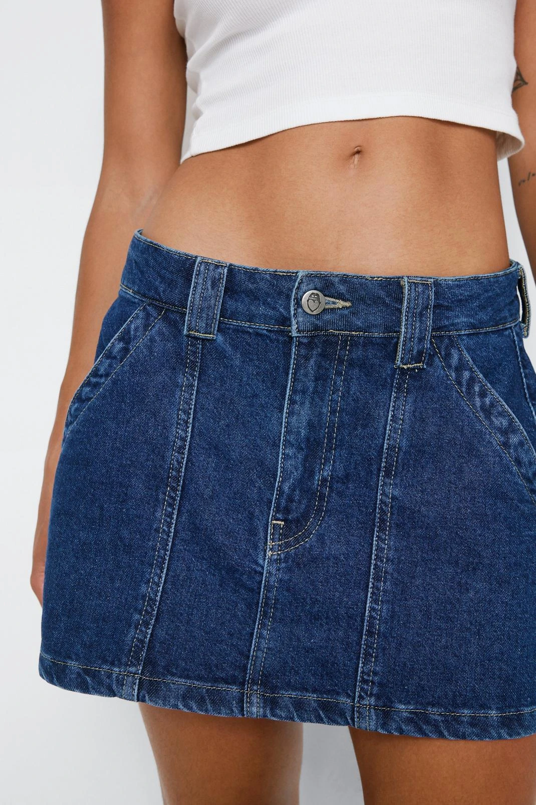 - Contrast Stitch Denim Micro Mini Skirt
