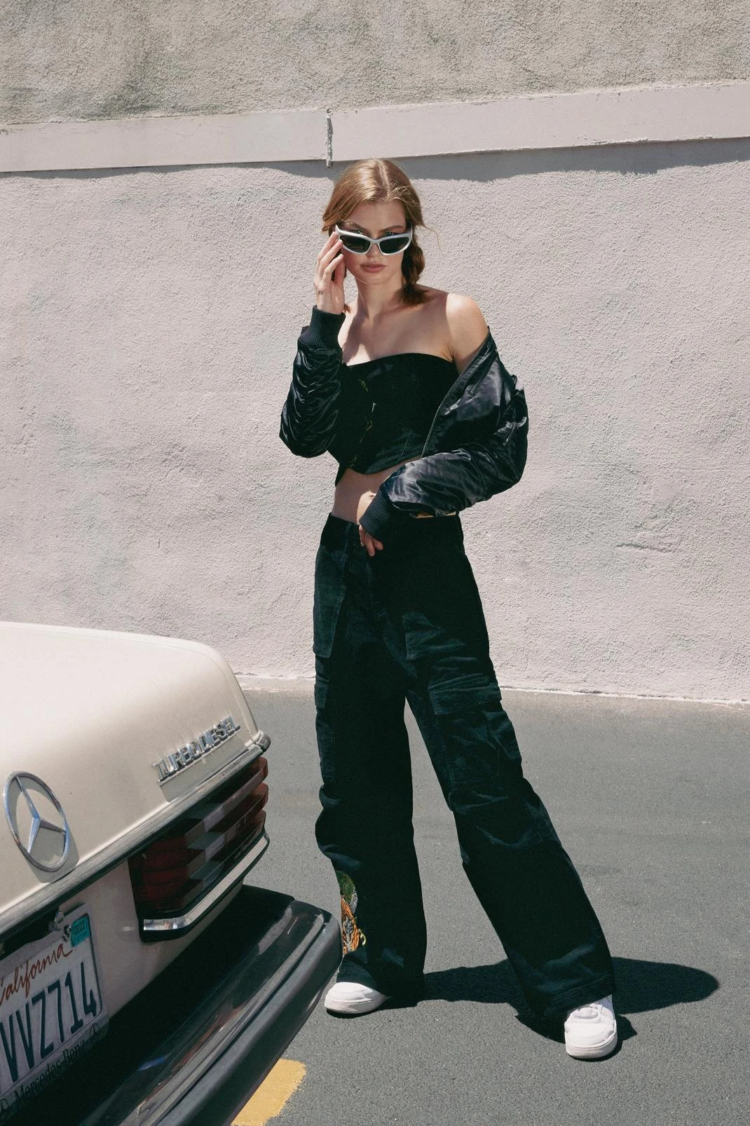 The future is yours. Our embroidered corduroy cargo pants are super cool and pair perfectly with the matching top.