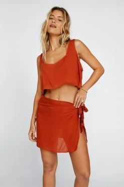 Crinkle Crop Vest And Mini Sarong Cover Up