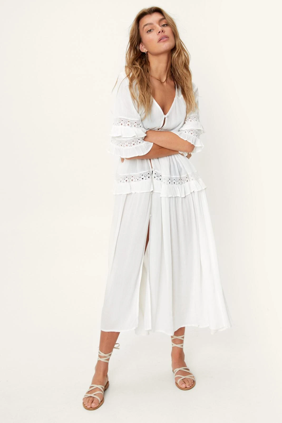 Going to greater lengths. Style yours for beach days with one of our high leg bikini sets and strappy satin sandals.