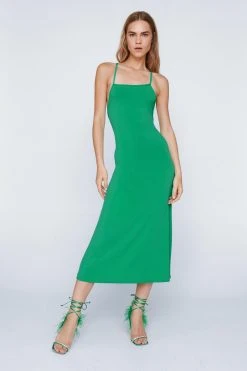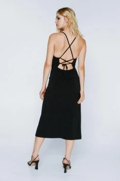 - Crossover Lace Up Back Midi Dress