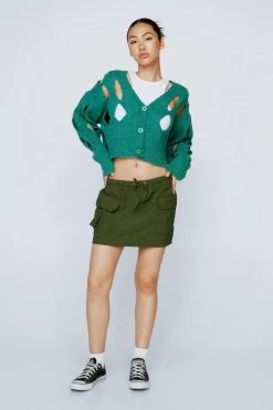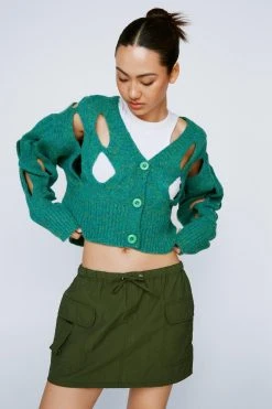 Cut them off. Style our cut out cropped cardigan with a tank top and skirt for a cute comfy day look.
