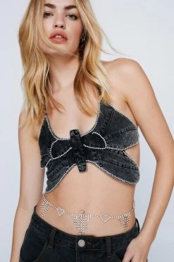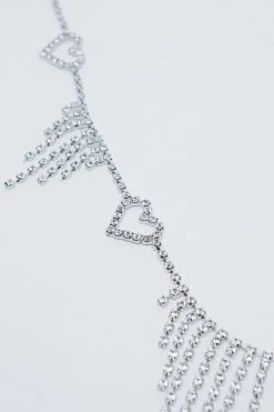 Add some sparkle. Feel glam in our chain belt, made with high quality sparkling diamantes, featuring heart details and drop diamante accents. Pairs well with crop tops and low rise jeans for a night out look that throws it back to the 90s, whether you’re hunting nearby dancefloors or hitting up happy hour.