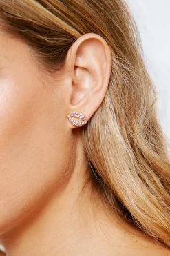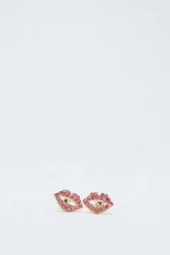 Sealed with a kiss. Our mouth shaped stud earrings will have you feeling ultra femme with their pink diamante design. Pairs well with nights out and date days.