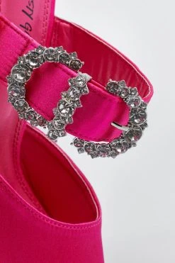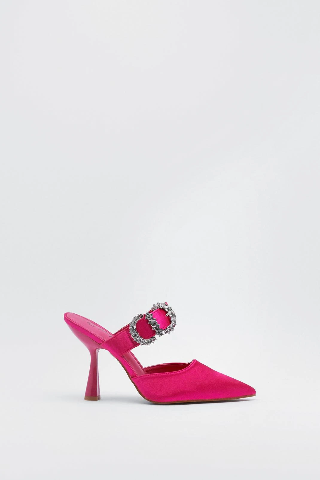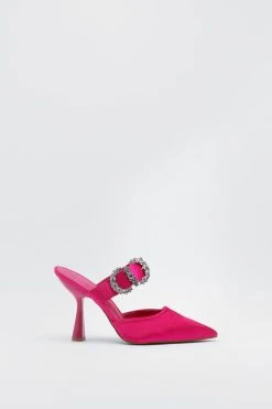 Step it up. Our heeled mules will have you feeling fierce, with sparkling diamante details, iconic pointed toes, and high quality satin fabric. Style them with mini dresses and skirts for a fun occasion look, perfect for wedding guest days, prom nights, and upcoming occasions.