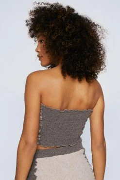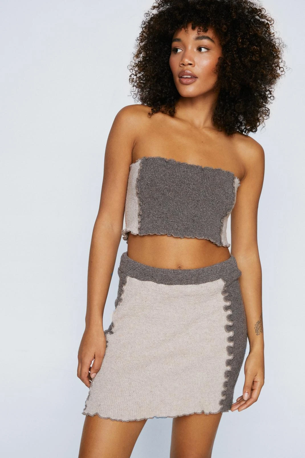 Seams likely. Our exposed seam knitted bandeau pairs well with the coordinating skirt.