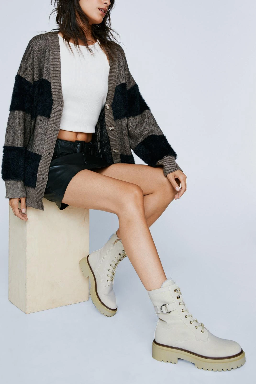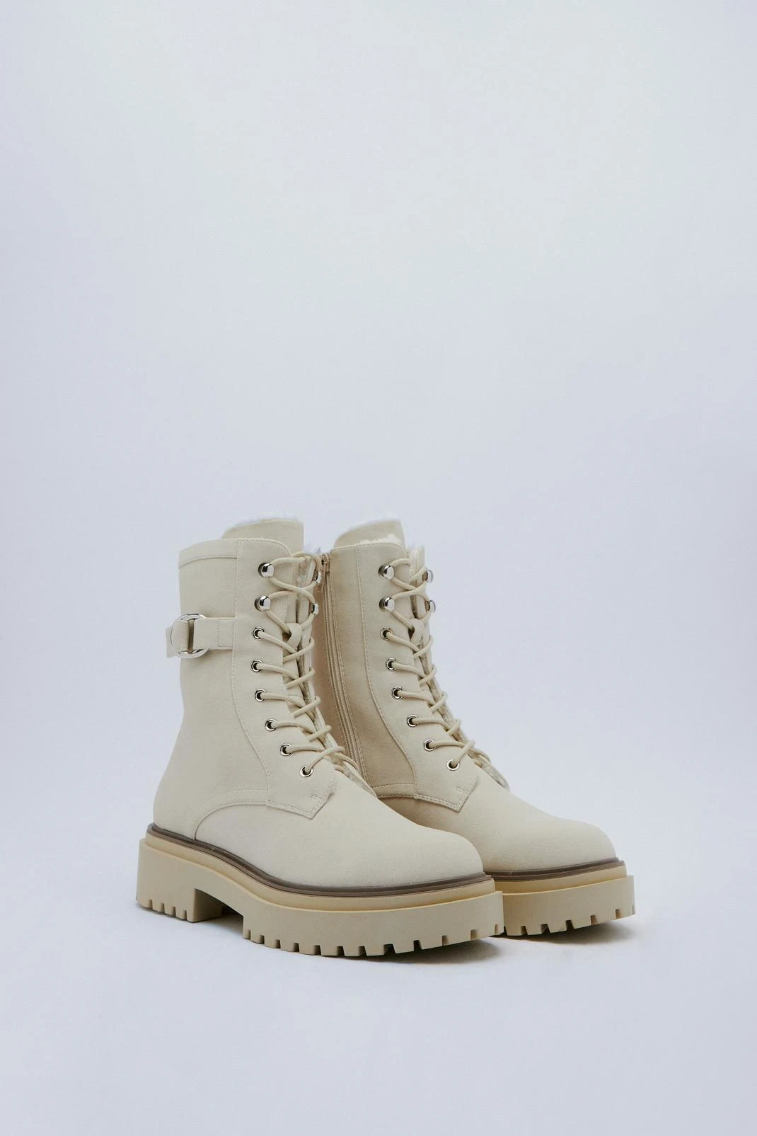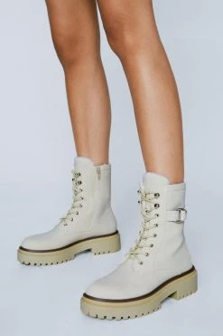 All laced up. Feel ready to seize the day when you step out in our biker boots, with lace detailing and an easy zip fastening, as well as a chunky sole and buckle strap features. Pairs well with dresses or cargo pants for a look that will take you anywhere, from casual shopping days to festival weekenders.
