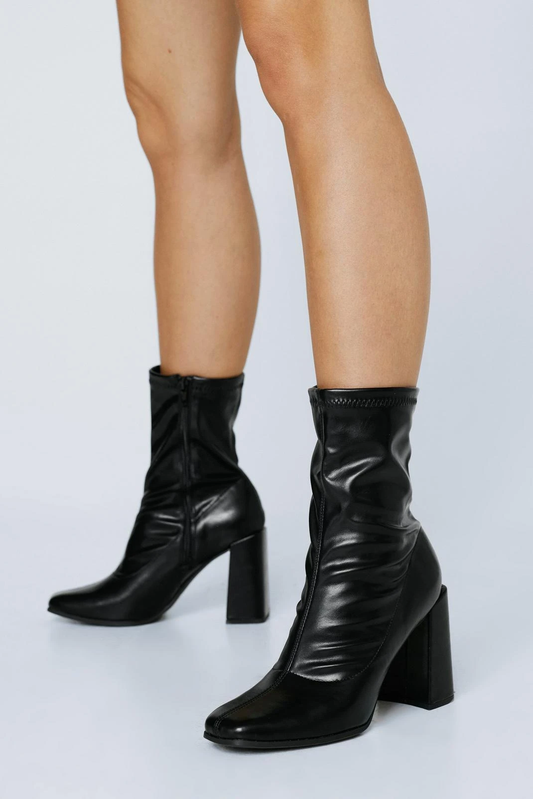 Elevated staples. Feel confident when you step out in our faux leather sock boots, with comfortable chunky soles and a minimal design for infinite outfit options. Pairs well with dresses or jeans for an elevated daytime look that will leave you feeling instantly put-together, taking you anywhere from parties to happy hours and dinner dates.