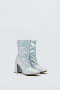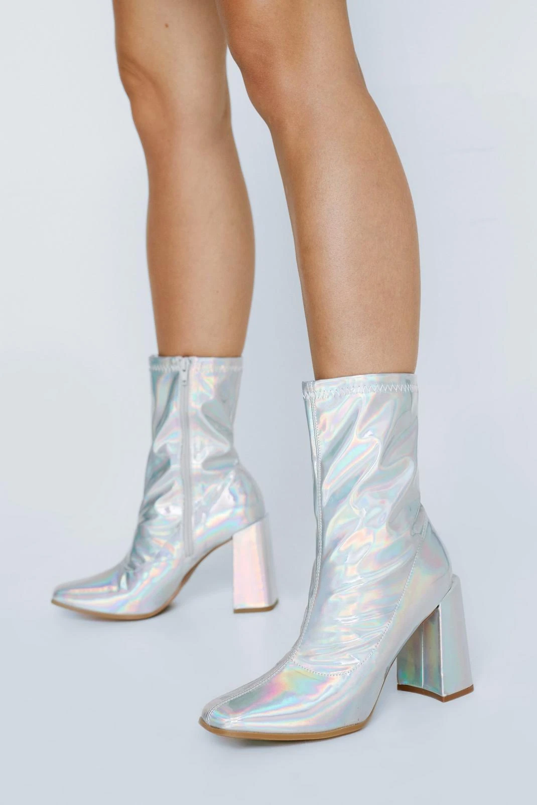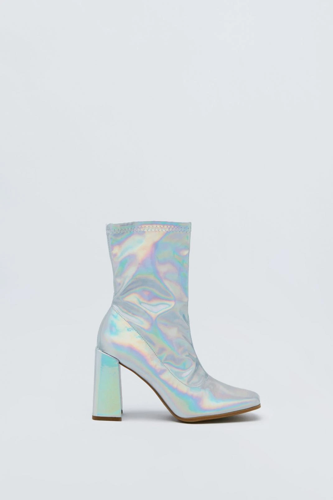 Step it up. Feel fierce in our sock boots, made in high quality faux leather, with comfortable chunky heels, and a statement iridescent colorway. Pairs well with your fave night out looks, perfect for festival weekends, gig nights, happy hours, and going from dinner to drinks.