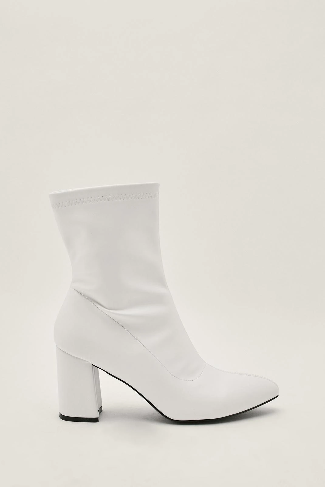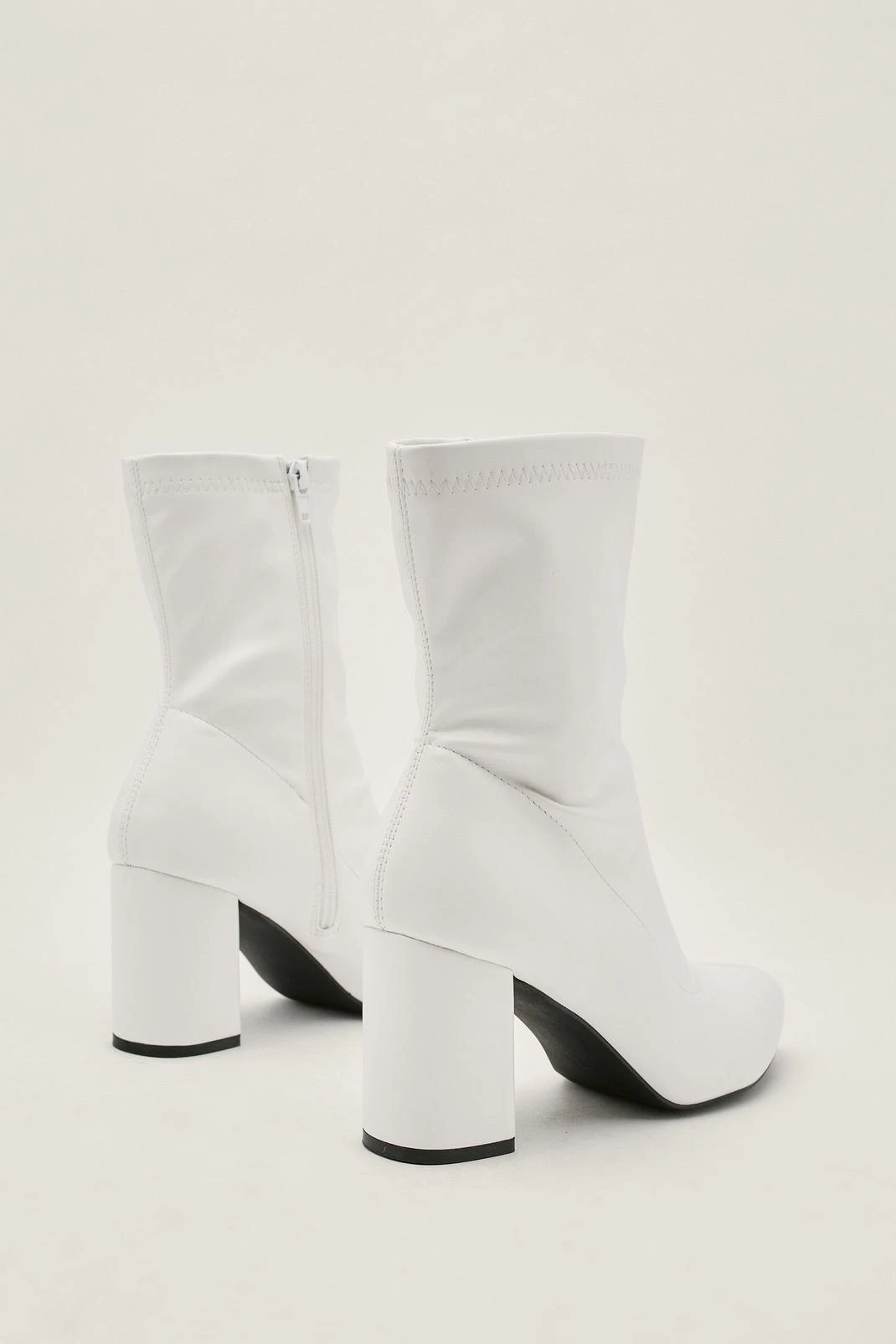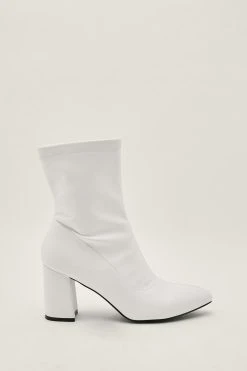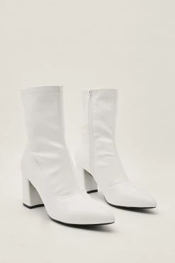 - Style: Patent Faux Leather Block Heel Sock Boots