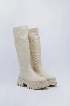Give it the boot. These boots feature a chunky design, cleated soles, and side zip closures. Team with a duster coat, mini skirt, and waistcoat for a sharp, sartorial look.