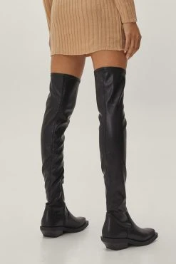 - Style: Faux Stretch Leather Over The Knee Cuban Heel Boots