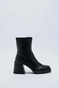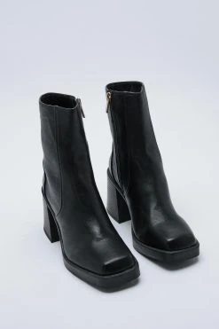 Strut it. Feel heightened in our faux leather platform boots, with a unique flared heel and super sleek design. Pairs well with dresses and jeans to instantly elevate your look, whether you’re heading out for the day with your girls or are hitting up the cocktail bar after an office day.
