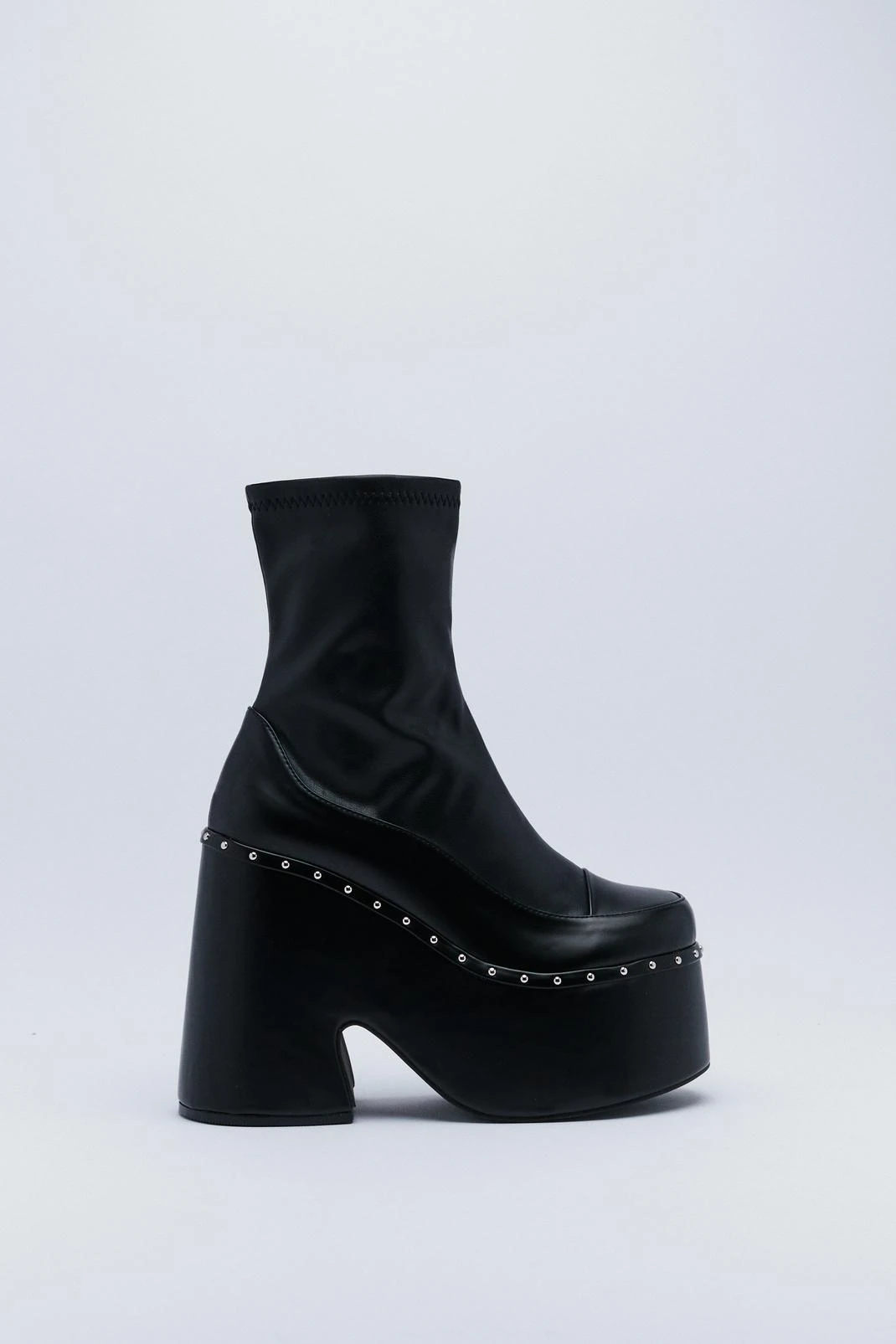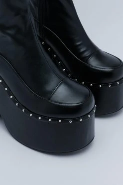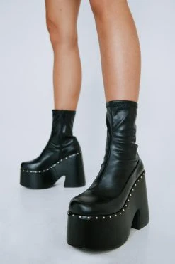 Give yourself a platform. Our faux leather platform boots feature studded detail and extreme platforms for added height without compromise on comfort.