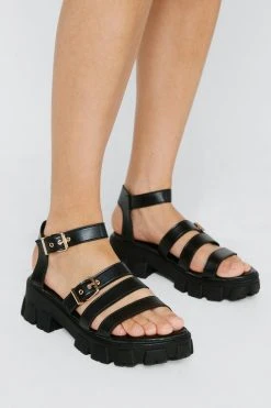 Stand out. These sandals feature a strappy design, open toes, cleated soles, and open heels. Wear with a bikini and crochet cover up next time you hit the beach.