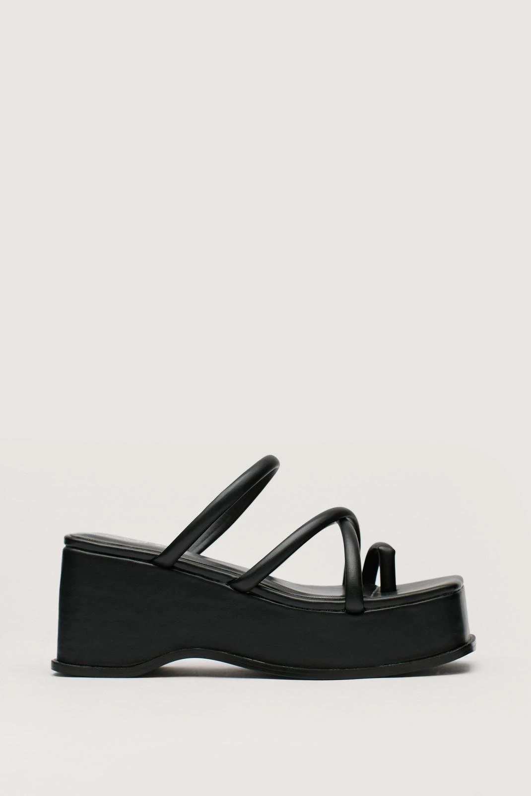 - Style: Faux Leather Strappy Flatform Mules