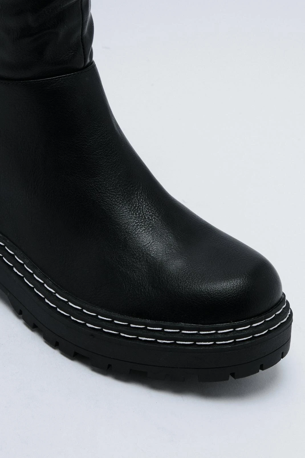 Made for walking. Feel ready to seize the day in our knee high boots, with high quality faux shearling fabric, contrasting stitch details, comfortable thick soles, and an easy inner ankle zip fastening. Pairs well with skirts and shorts for an elevated daytime look, perfect for festival weekenders to wintery walks.