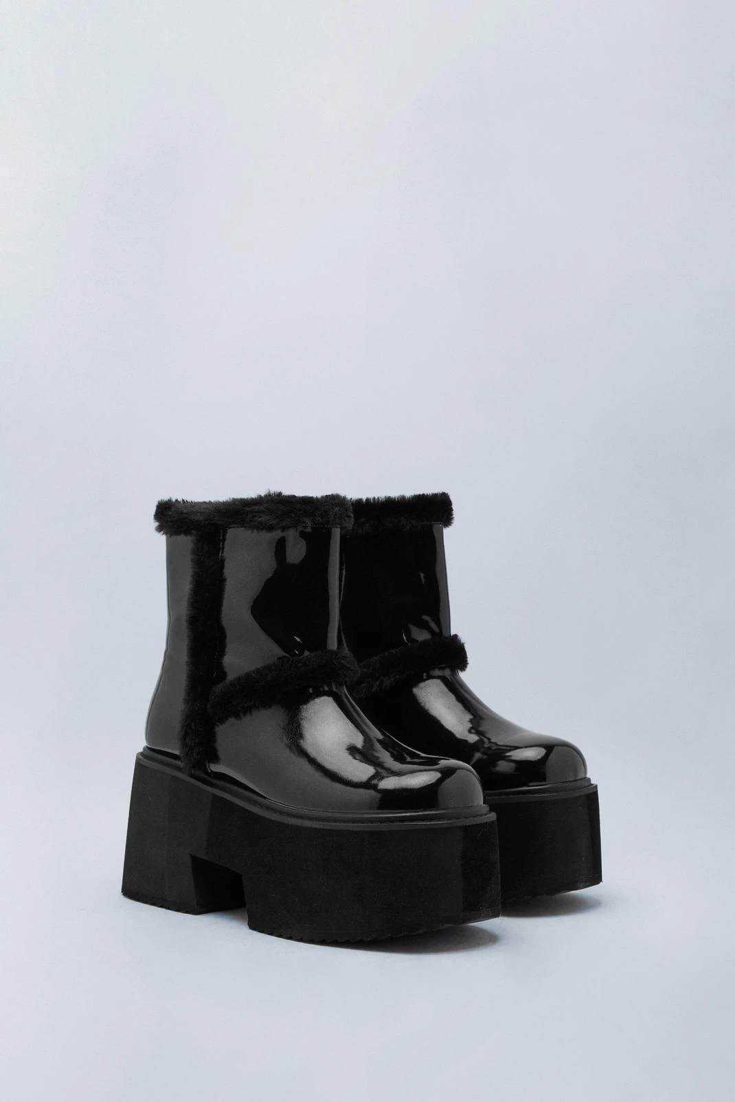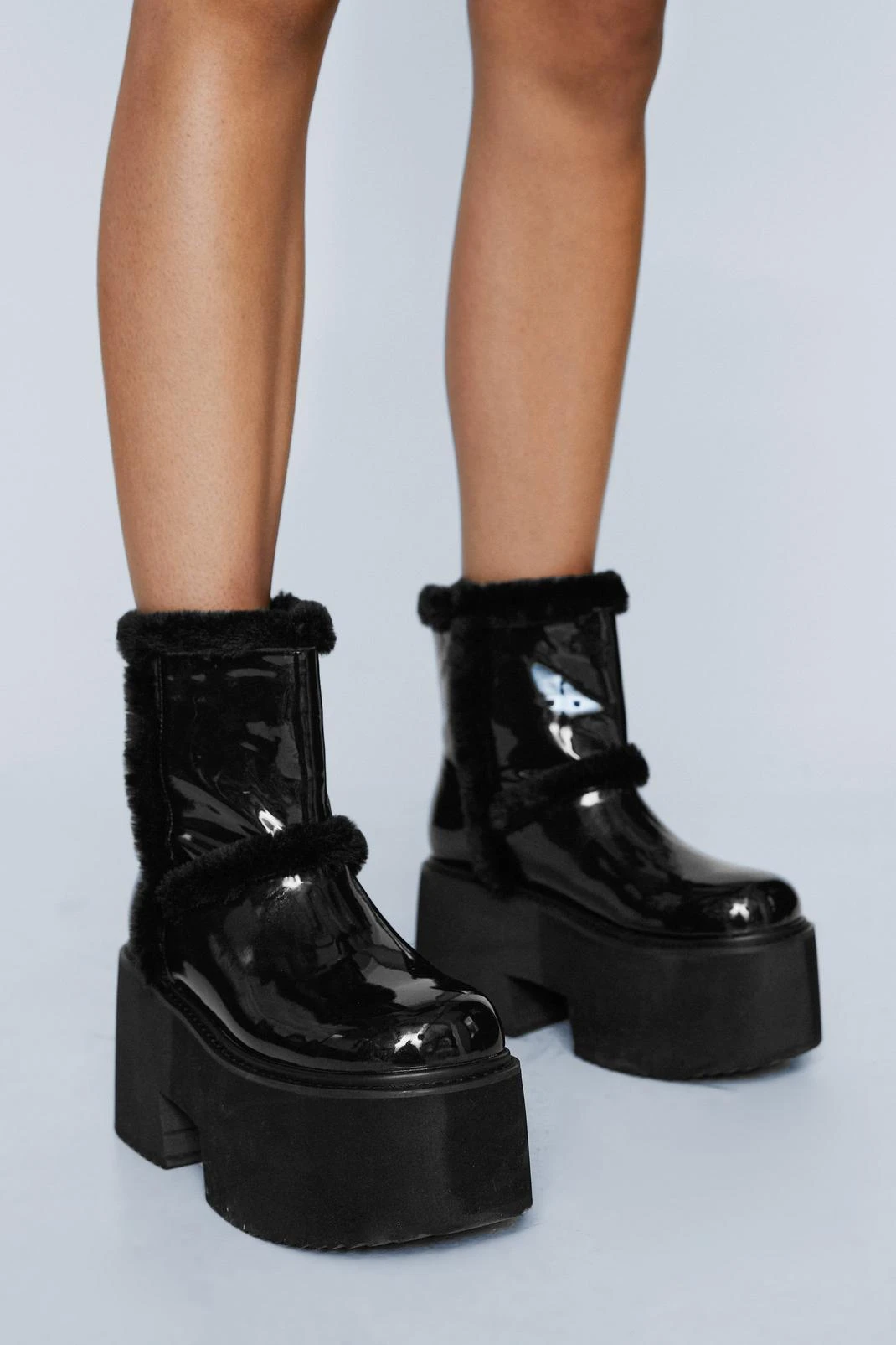 Upper: 80% Patent, 20% Faux Fur. Lining: 40% PU, 60% Faux Fur. Sole: 100% Eva.