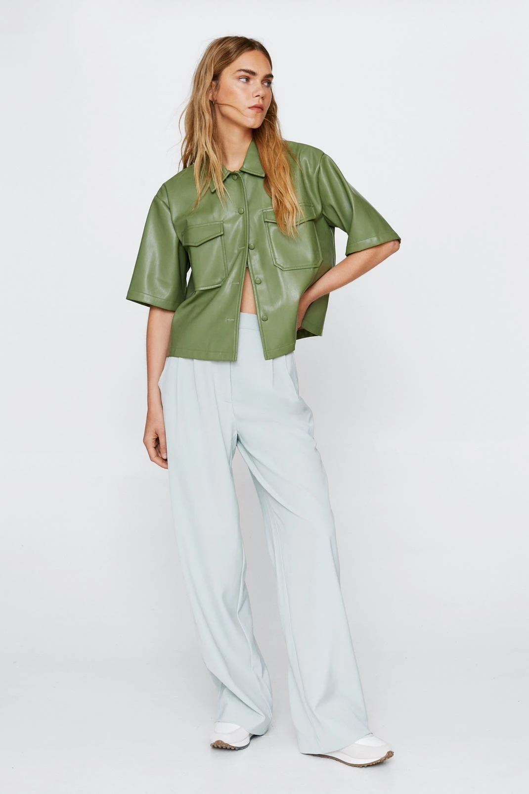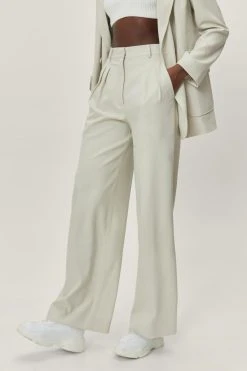 Fix up, look sharp. These tailored pants come in a blend of durable fabrics and feature a flattering, high waisted silhouette, concealed zip-down fly closure, dart detailing, deep pockets, and full-length leg design. Channel casual sophisticated by teaming yours with chunky sneakers and the matching double breasted blazer.