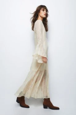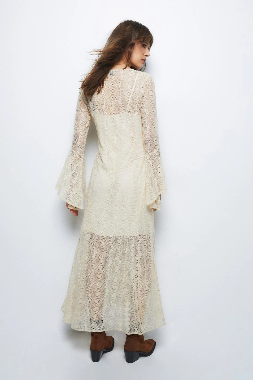 Lace layers. Our intricate lace plunge maxi dress looks great with boots or sandals, and carries you seamlessly from sunrise to sundown.