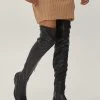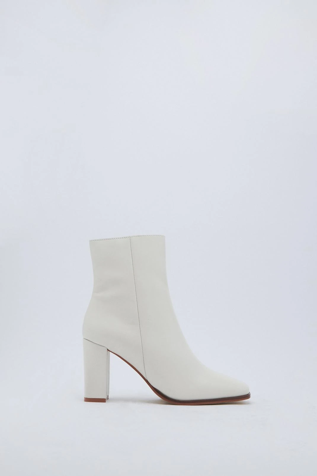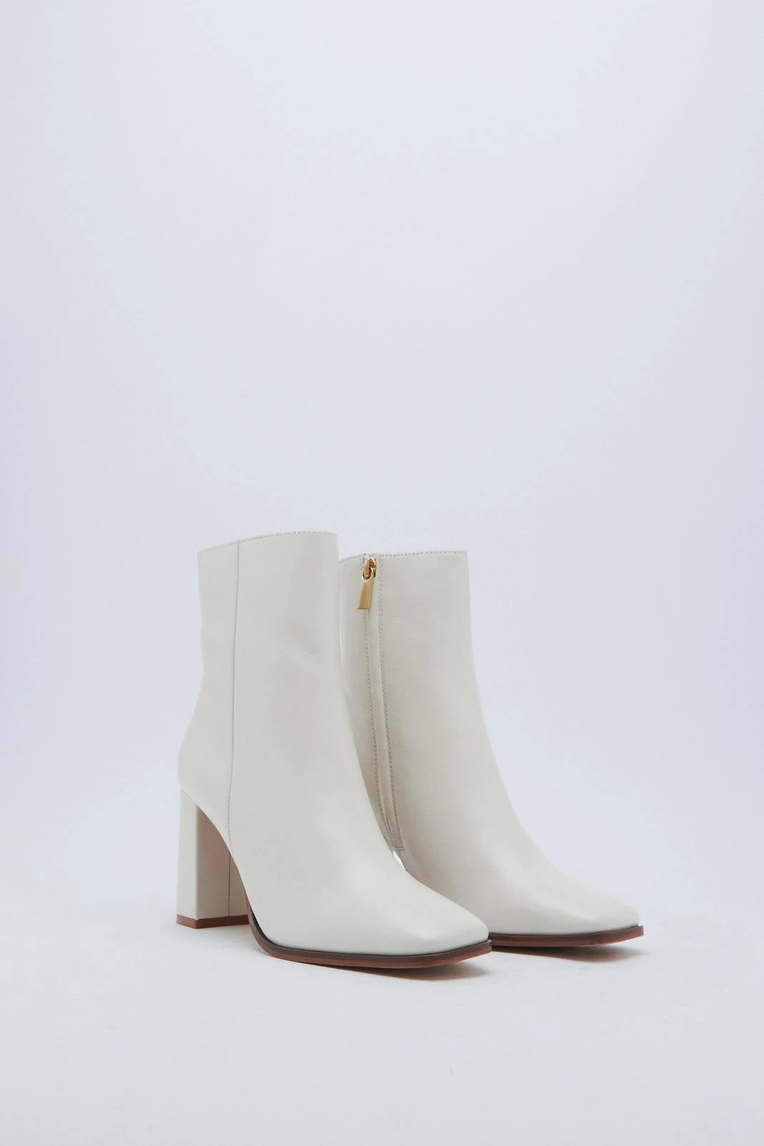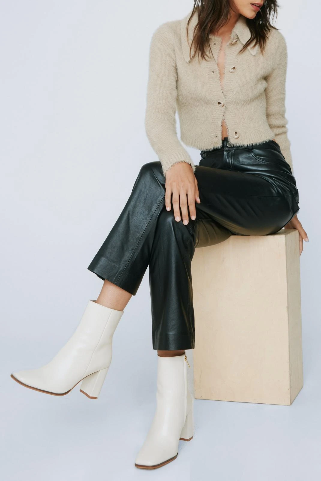 Bet your boots. These boots feature square toes, slim block heels, and side zip closures. Style with leather pants and a fluffy knit cardigan.