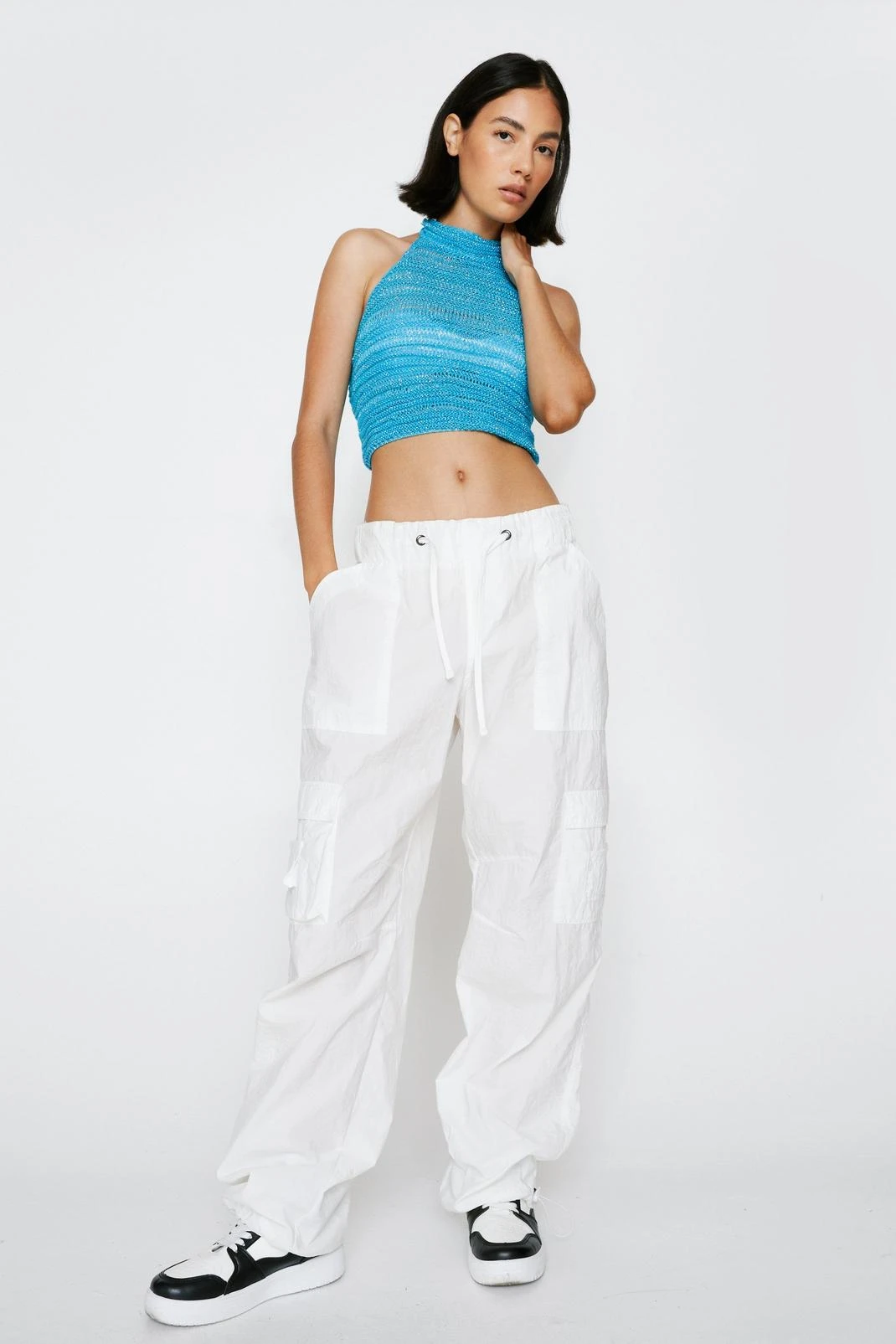 - Metallic Crochet High Neck Crop Top