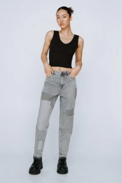 All Things Considered by Nasty Gal is our collection of sustainable pieces each thoughtfully considered and crafted with the world in mind. These jeans come in an organic denim and feature a high waisted, relaxed silhouette, zip fly closure, belt loops, patchwork design, 5 pocket design, and belt loops. Style yours with a lace corset top and slip on loafers.