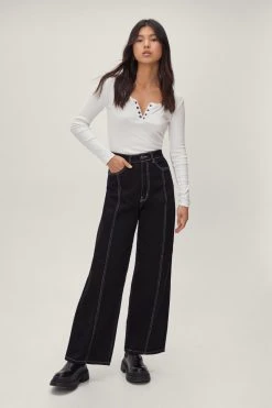 All Things Considered by Nasty Gal is our collection of sustainable pieces each thoughtfully considered and crafted with the world in mind. These jeans come in a black wash organic denim and feature a high waisted, wide leg silhouette, seam detailing, 5 pocket design, belt loops, and zip fly closure. Your favorite jeans but better. Style with a basic tank and chunky sneakers.