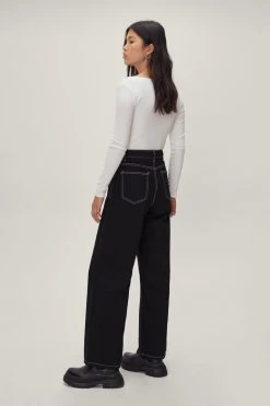 All Things Considered by Nasty Gal is our collection of sustainable pieces each thoughtfully considered and crafted with the world in mind. These jeans come in a black wash organic denim and feature a high waisted, wide leg silhouette, seam detailing, 5 pocket design, belt loops, and zip fly closure. Your favorite jeans but better. Style with a basic tank and chunky sneakers.
