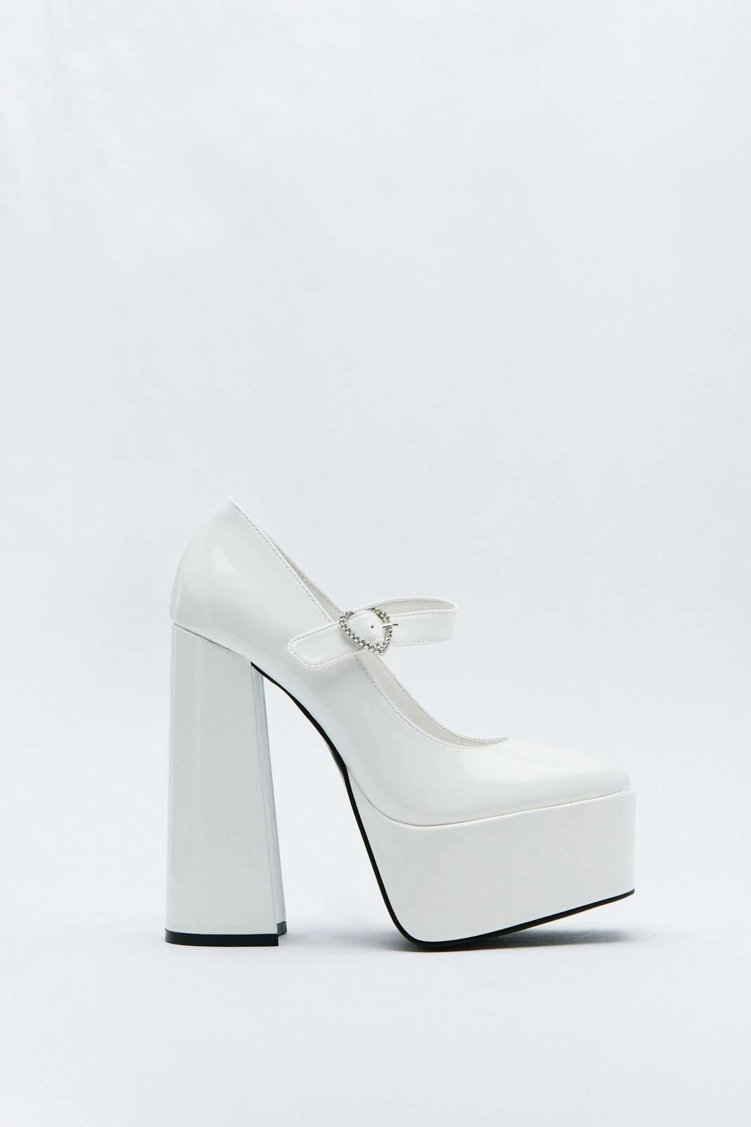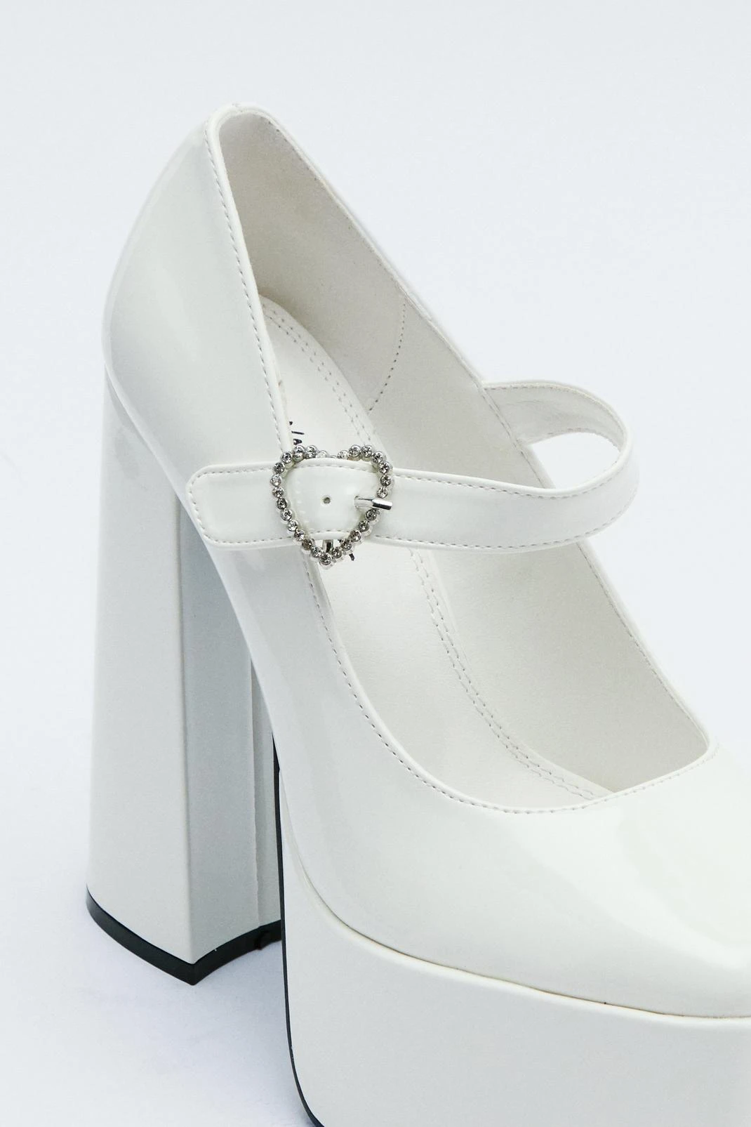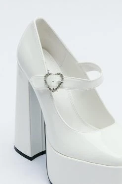 Stand tall. Our patent platform Mary Jane shoes come with a delicate diamante heart and bags of height.