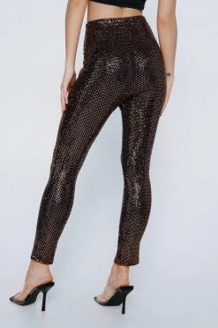 Dazzle them. Our petite leggings will have you feeling glam with their sequin fabric and high waisted design. Pairs well with blazers and late nights.
