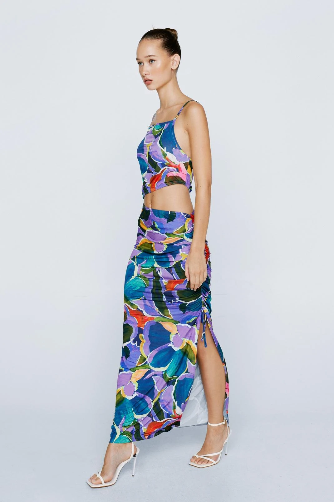 95% Polyester 5% Elastane/Spandex. Wash with similar colours.