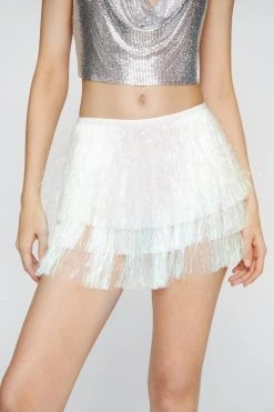 - Style: High Waisted Tiered Fringe Shorts