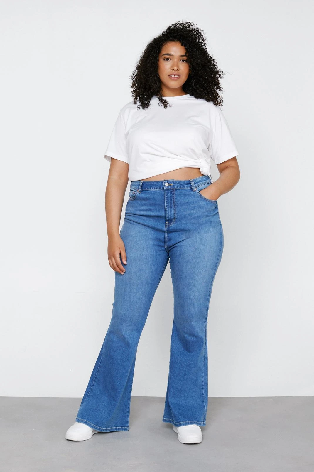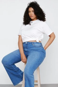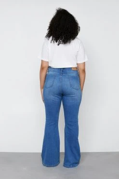 Plus Size High Waisted Denim Flared Pants