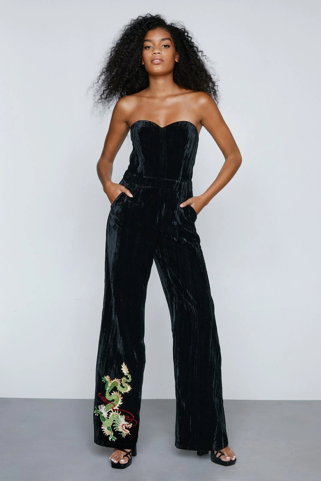 Bandeau together. Our bandeau jumpsuit in high quality velvet looks great with strappy heels and a glass in hand.