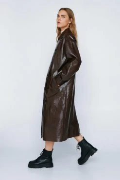 Coat conditions. Our premium faux leather vinyl coat has fun toggle fastenings and a longline design to keep you feeling cozy. Style over your favorite cold weather outfits to be protected from the elements.