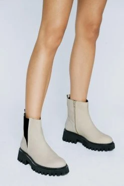 Leather weather. Feel elevated in our leather Chelsea boots, made in high quality real leather, with an ultra comfortable chunky platform sole. Our real leather chunky chelsea boots look great no matter the season, and can be worn anywhere from the office to long days out to coffee catch ups.