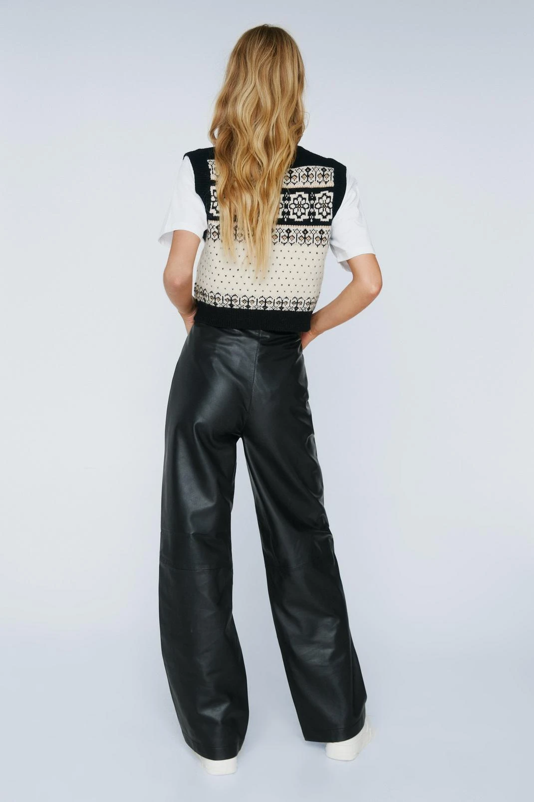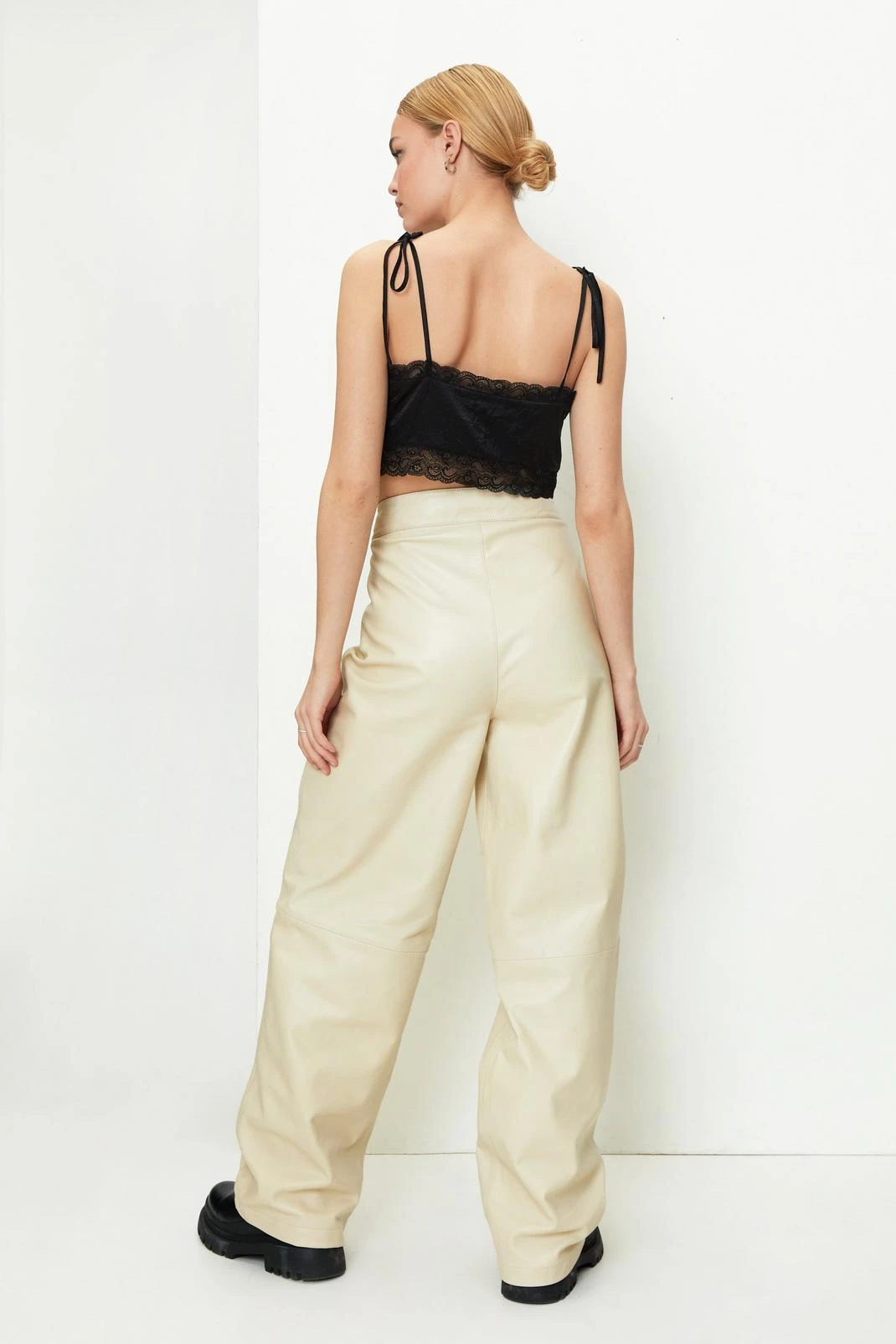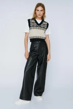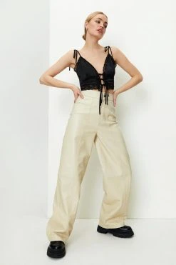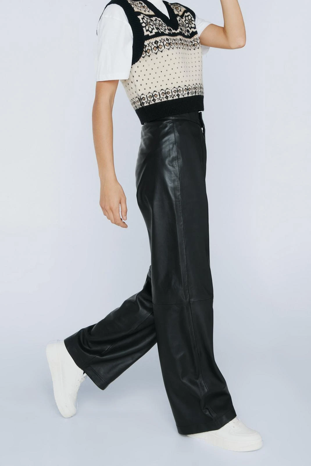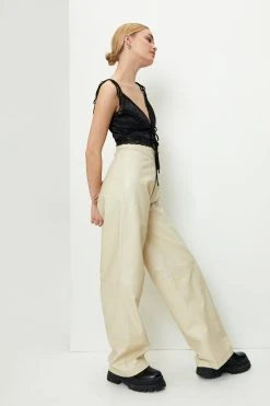 - Real Leather Wide Leg Pants