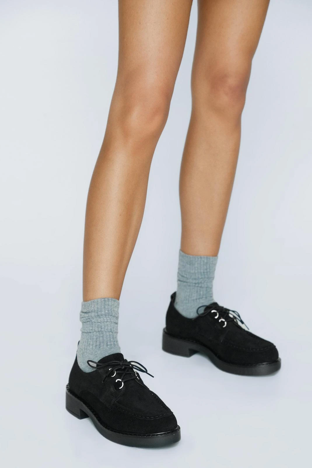 Fancy footwork. Feel cute in our suede loafers, made in high quality real suede, with chunky heels and a lace-up fastening. Pairs well with maxi skirts, dresses, and jeans for a look that will take seamlessly from day to night, from the office to dinner dates to drinks.