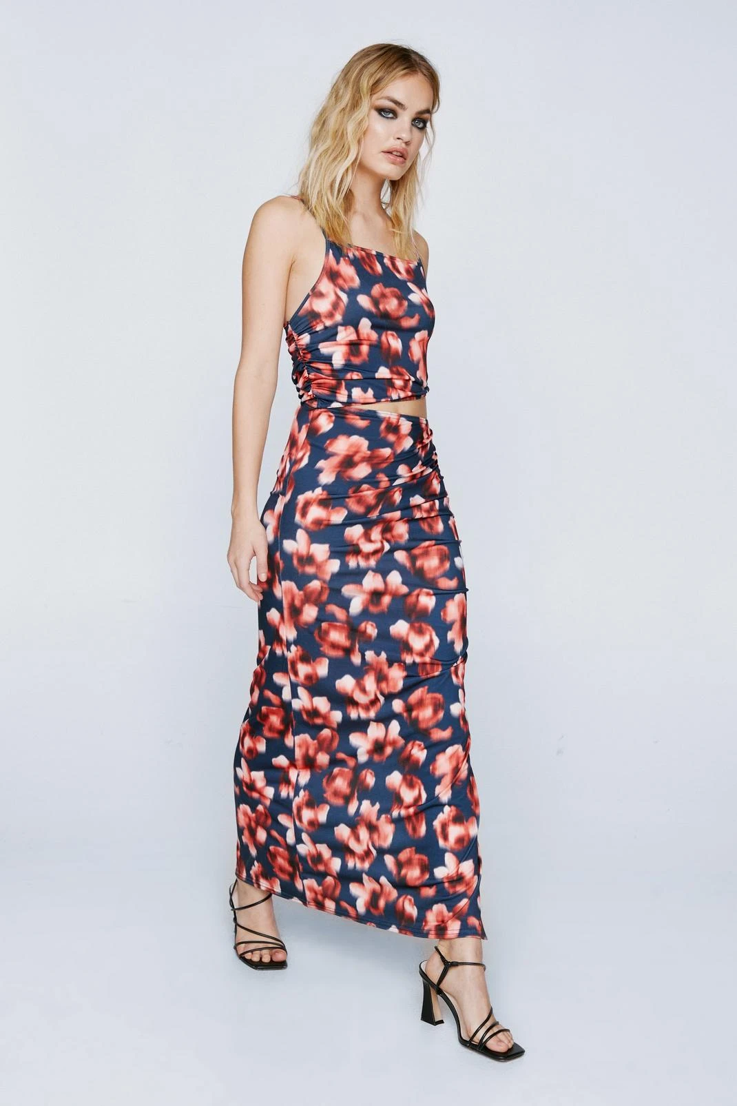 - Ruched Side Floral Print Midi Dress