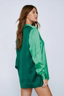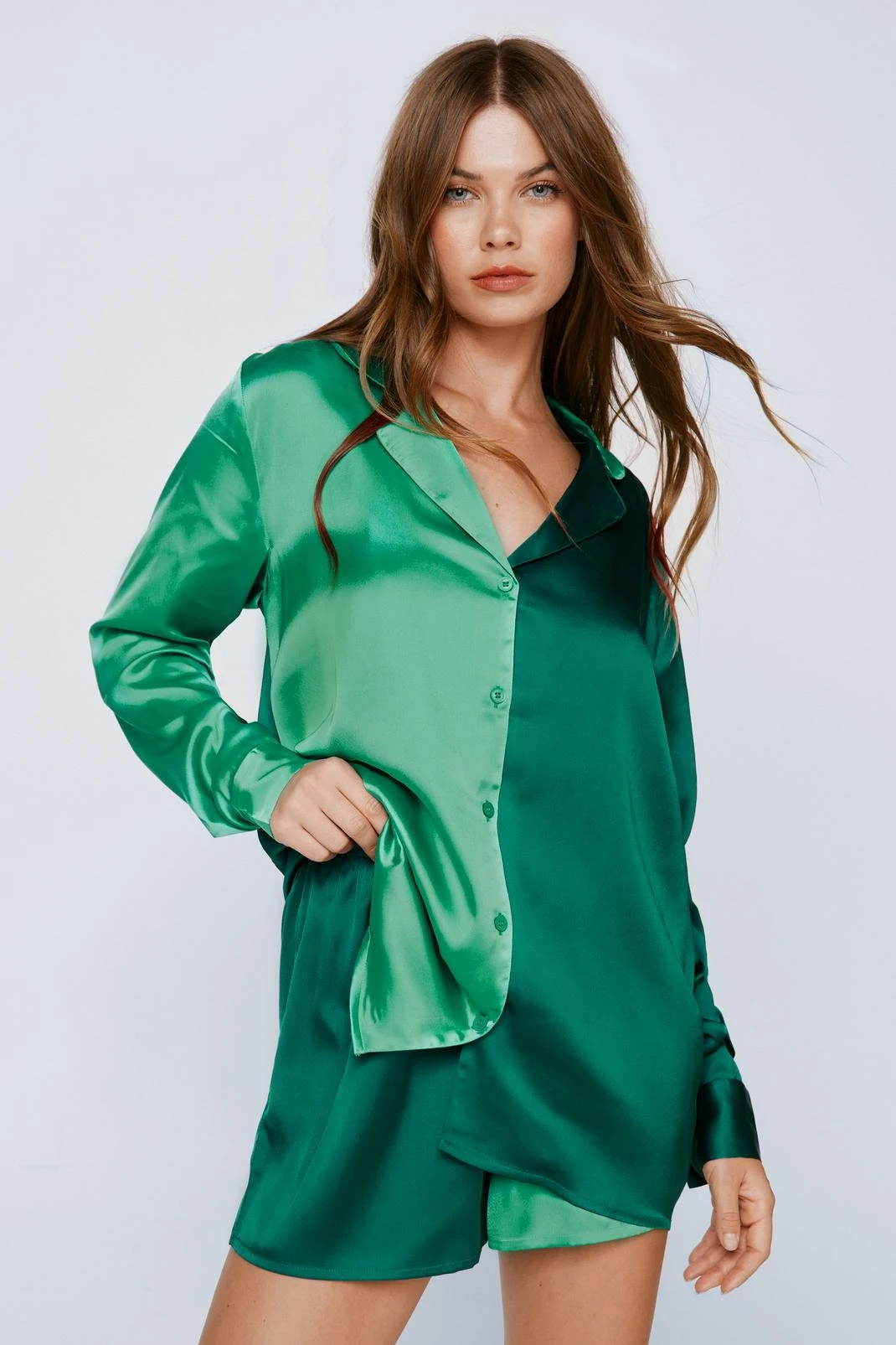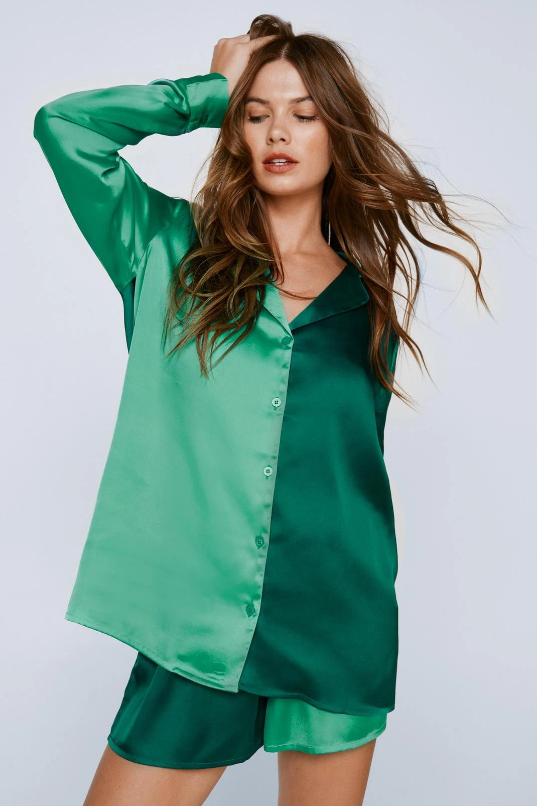- Satin Colorblock Pajama Shirt And Shorts Set
